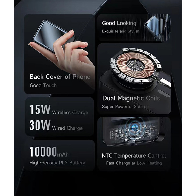 Type-C Input: 5V⎓3A | 9V⎓2.2 A | 12V⎓1.6A Type-C Output: 5V⎓3A | 9V⎓3A | 12V⎓2.5A | 15V⎓2A | 30W Max Wireless: 5W | 7.5W | 10W | 15W