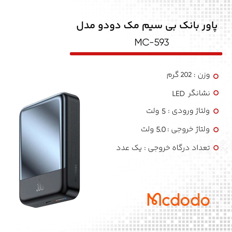 پاوربانک مک دودو مدل MC-593 ظرفیت 10000 میلی آمپر ساعت