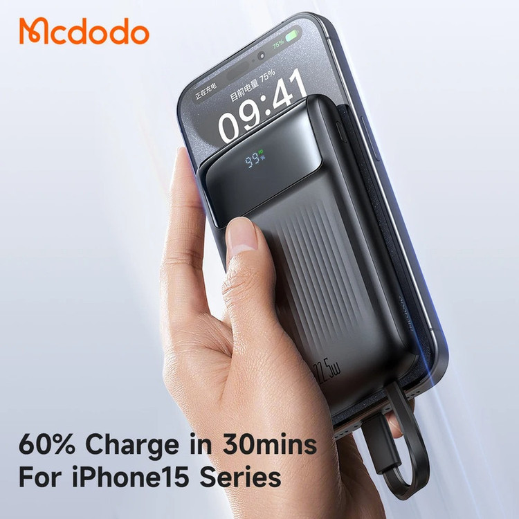 پاوربانک مک دودو مدل MC-024 یک انتخاب بینظیر برای افرادی است که به دنبال یک دستگاه قابلحمل، قدرتمند، و چندکاره هستند. این پاوربانک با ظرفیت 10000 میلیآمپر ساعت و طراحی جمعوجور، به شما اجازه میدهد تا همیشه و همهجا دستگاههای الکترونیکی خود را با خیالی آسوده شارژ کنید. تجربهای بینظیر از شارژ سریع: یکی از مهمترین ویژگیهای این پاوربانک، توان شارژ سریع 22.5 وات آن است که باعث میشود دستگاههای شما با سرعتی باورنکردنی شارژ شوند. در عرض تنها 30 دقیقه میتوانید گوشی آیفون یا هر دستگاه اندرویدی را تا 60 درصد شارژ کنید. این پاوربانک از پروتکلهای شارژ سریع PD (Power Delivery) و QC (Quick Charge) پشتیبانی میکند، به این معنا که با جدیدترین دستگاهها نیز کاملاً سازگار است. چه در حال سفر باشید، چه در یک جلسه کاری مهم، دیگر نگرانی بابت تمام شدن شارژ نخواهید داشت! دو کابل داخلی، همه نیازهای شما را رفع میکند: یکی از نقاط قوت این پاوربانک، وجود دو کابل داخلی USB-C و Lightning است. این ویژگی منحصربهفرد باعث میشود که همیشه کابل مورد نیاز برای شارژ دستگاههای اپل و اندروید را در دسترس داشته باشید، بدون نیاز به حمل کابلهای اضافی. این طراحی هوشمندانه، راحتی فوقالعادهای را به شما ارائه میدهد و به شما اجازه میدهد تا به سرعت دستگاههای مختلف خود را شارژ کنید. شارژ همزمان چند دستگاه: آیا نیاز دارید همزمان چند دستگاه را شارژ کنید؟ پاوربانک MC-024 با داشتن 4 خروجی، امکان شارژ همزمان چهار دستگاه را فراهم میکند. این دستگاه میتواند آیفون، تبلت، هدفون بیسیم، و ساعت هوشمند شما را همگی بهطور همزمان و سریع شارژ کند. به لطف این ویژگی، دیگر نیازی به منتظر ماندن برای شارژ هر دستگاه به صورت جداگانه نخواهید داشت. طراحی زیبا و بادوام: این پاوربانک نه تنها قدرتمند است، بلکه با طراحی ظریف و بدنهای از جنس ABS و PC مقاوم، بهعنوان یک محصول با دوام و شیک شناخته میشود. ابعاد کوچک و وزن سبک (تنها 220 گرم) آن را به گزینهای ایدهآل برای قرار گرفتن در کیف یا جیب شما تبدیل کرده است. همچنین، نمایشگر LED دیجیتال آن به شما امکان میدهد وضعیت باتری را به راحتی مشاهده کنید، تا همیشه از میزان شارژ باقیمانده آگاه باشید.