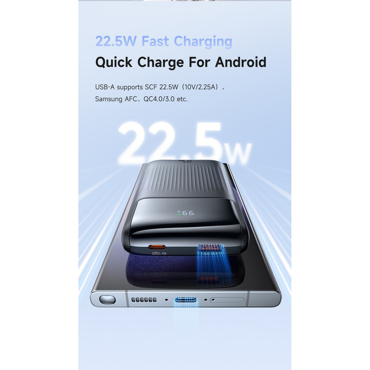 ظرفیت باتری: 10000mAh (باتری لیتیوم پلیمر) ورودی: USB-C (5V=3A, 9V=2A, 12V=1.5A) خروجیها: USB-A: 22.5 وات (5V=3A, 9V=2A, 10V=2.25A, 12V=1.5A) USB-C: 20 وات (5V=3A, 9V=2.22A, 12V=1.67A) کابل USB-C: 20 وات کابل Lightning: 5V=2.4A